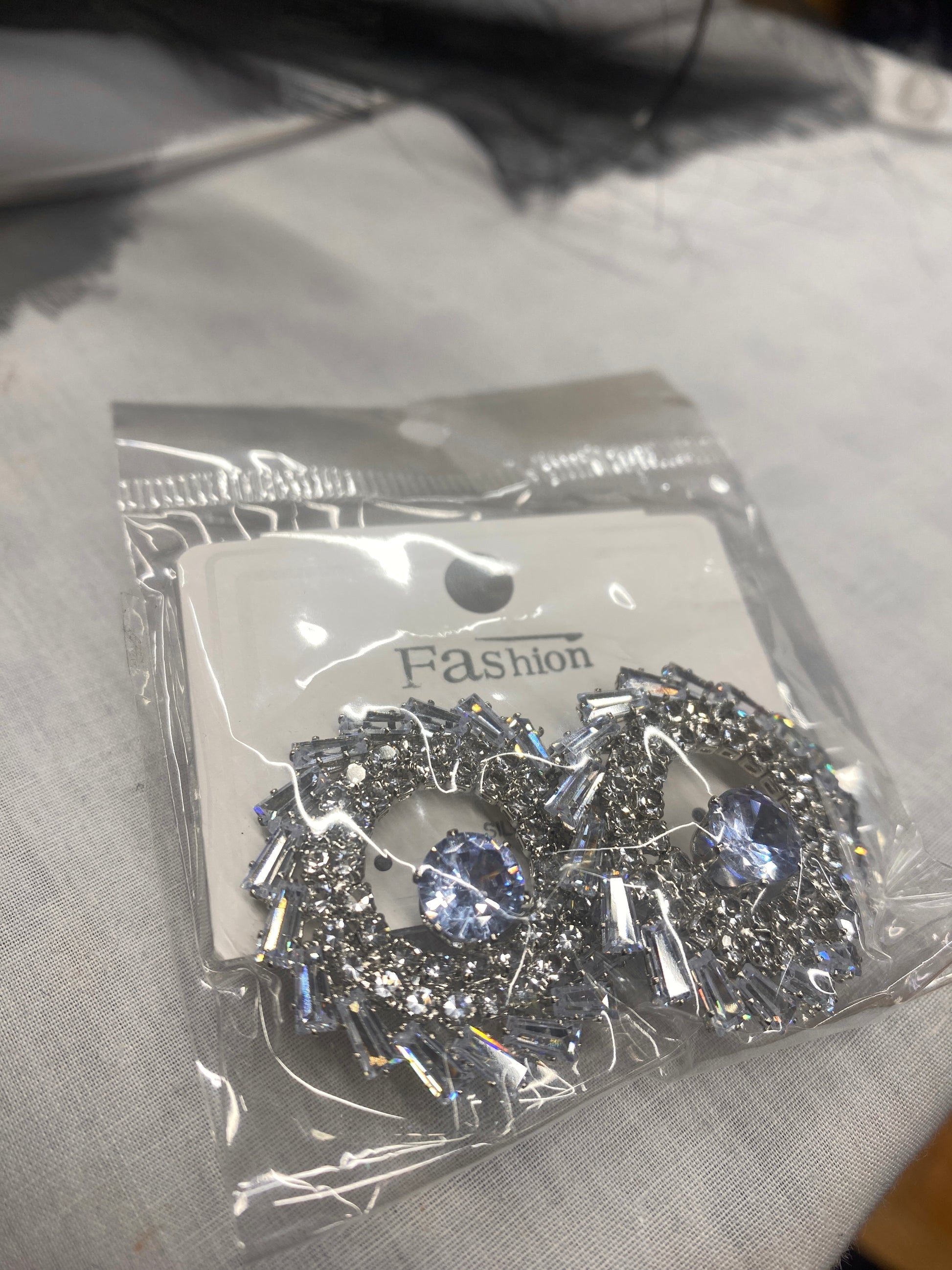 Round rough edged silver faux diamond earring with circular diamond in the centre.
