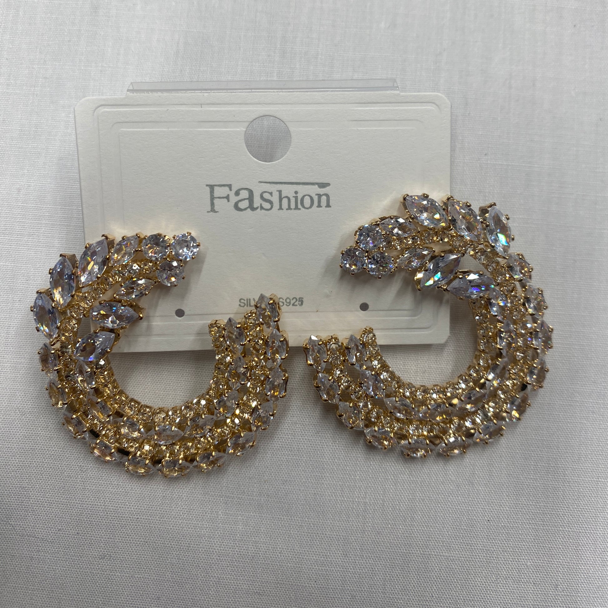 Gold Hoops Bonded with Faux Diamonds.